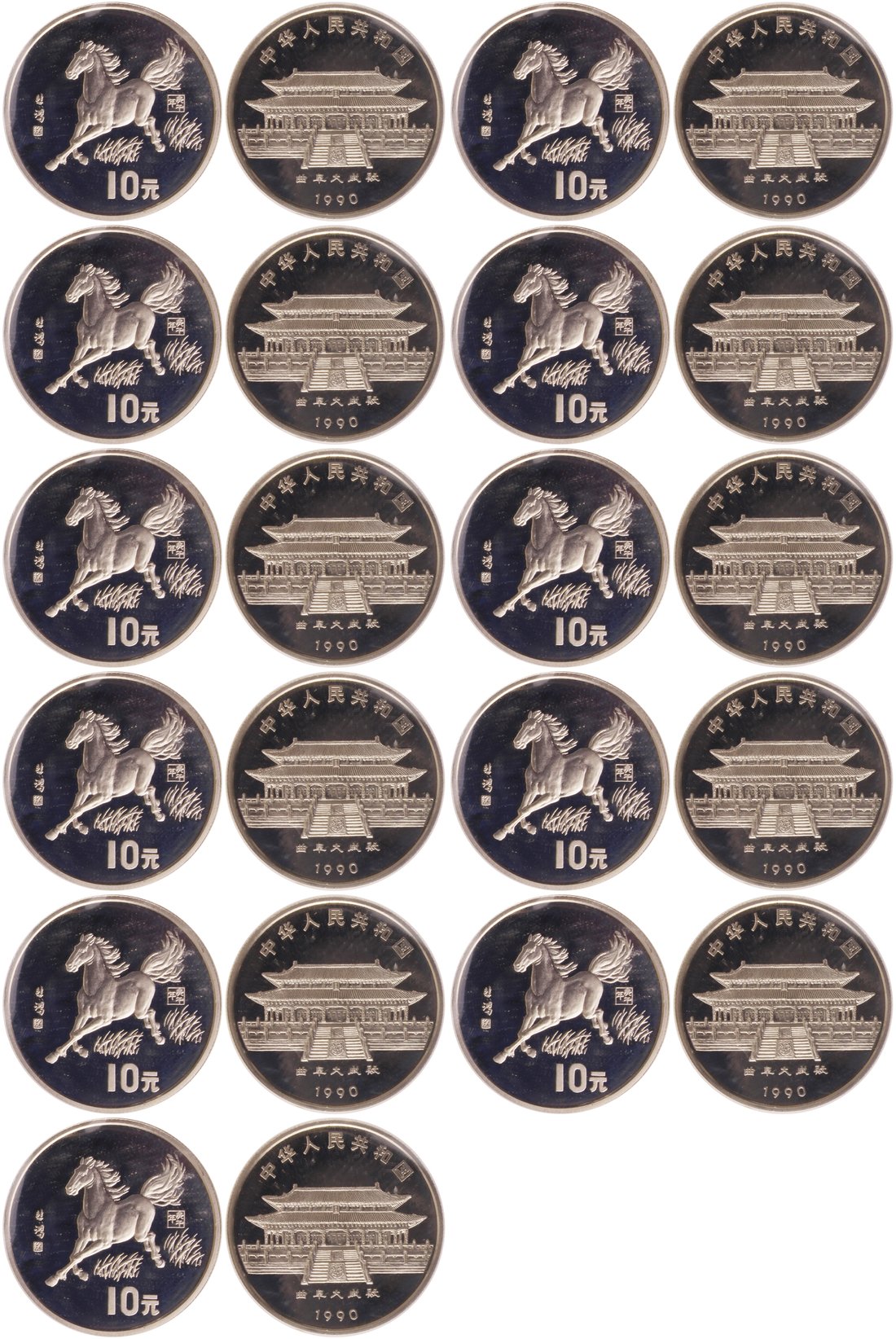 China, a lot of 9 x silver 10 yuan, 1990, Year of the Horse, 15 gm silver proof coins, with original packing and certificate,