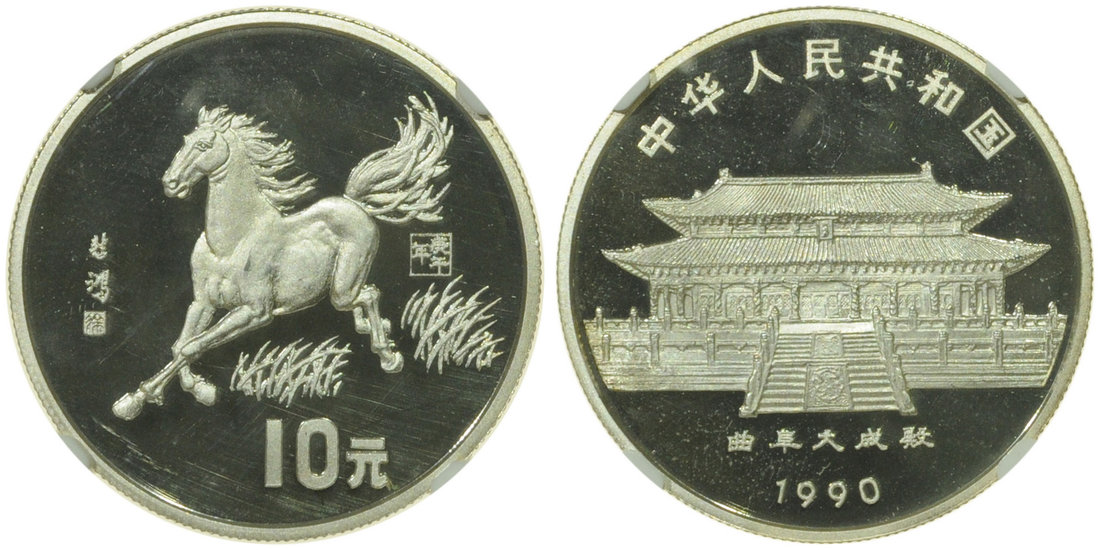 People's Republic of China, silver 10 yuan, 1990, Year of Horse, 90% silver, 15 grams,