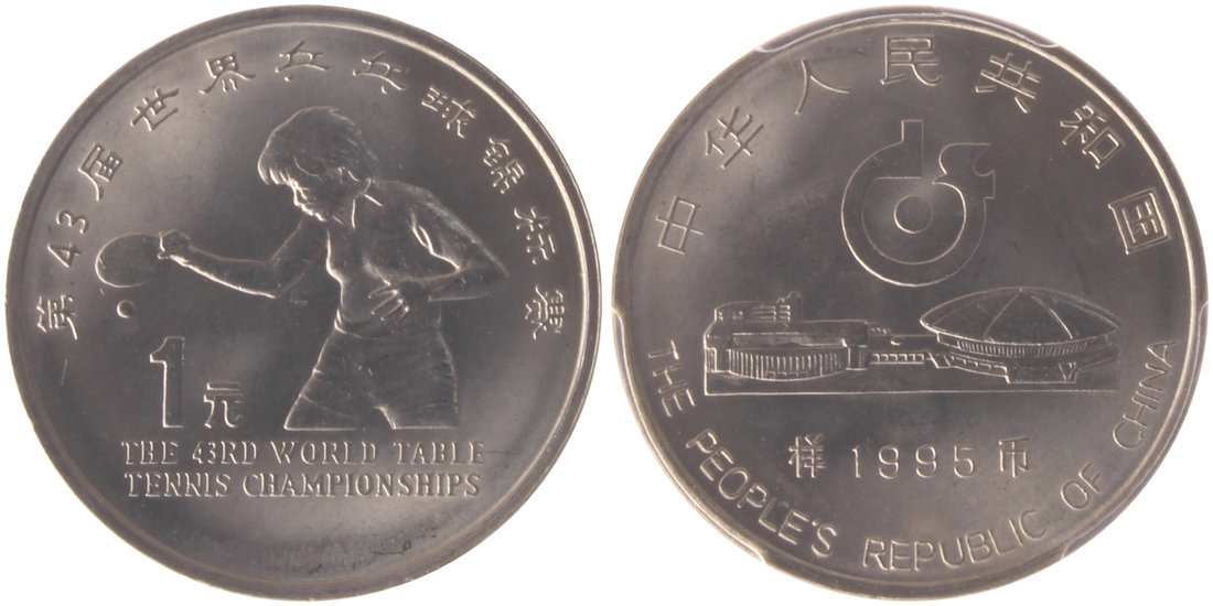 China, nickel 1 yuan, 1995, the 43rd World Table Tennis Championship, specimen,