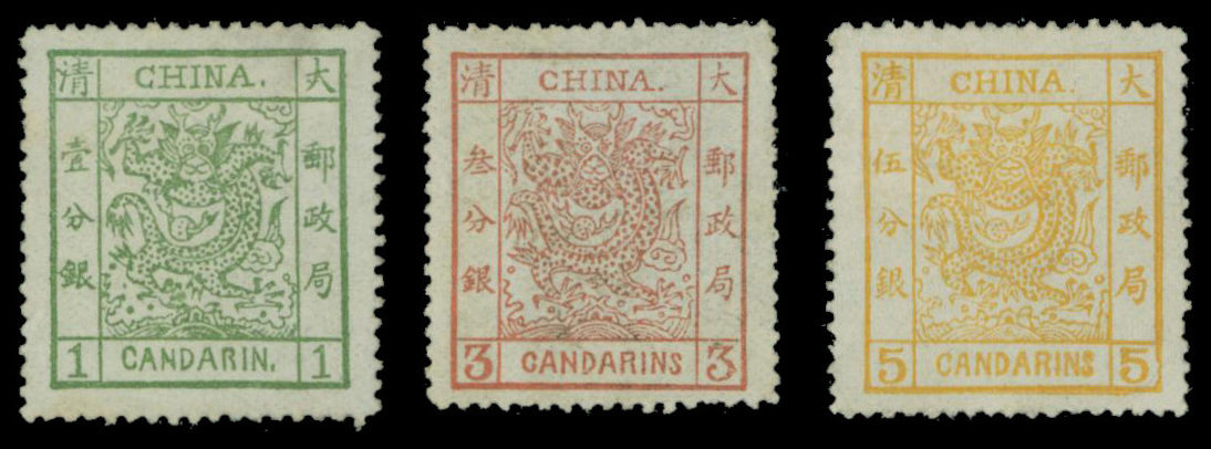 1ca. bright green [23], 3ca. brown-red [16] and 5ca. yellow-ochre [25] unused and regummed; well centred, 1ca. and 5ca. particularly fresh appearance. S.G. 4-6