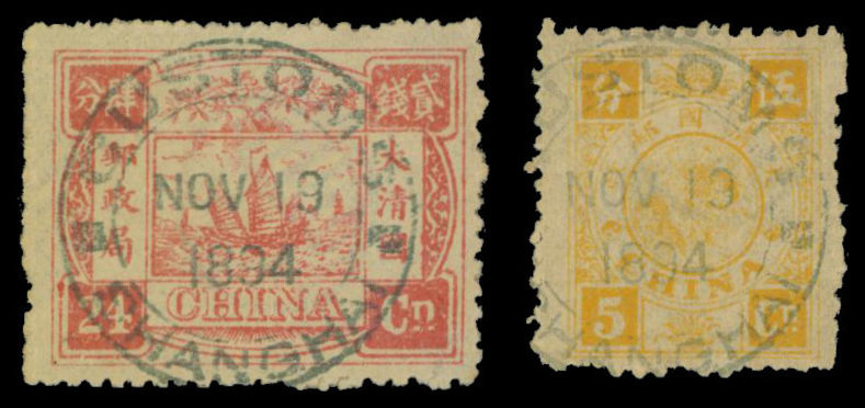 1ca. to 24ca. set of nine, each cancelled by 1894 (19 Nov.) Shanghai Customs c.d.s.; clean and fine