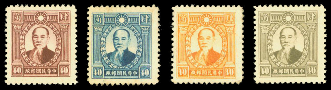 1941 (c.) essays for Lin Sen 40c. perf.12, four different colours on wove paper, unused to paer original gum (blue); good to fine. Produced by the Printex method. (4)