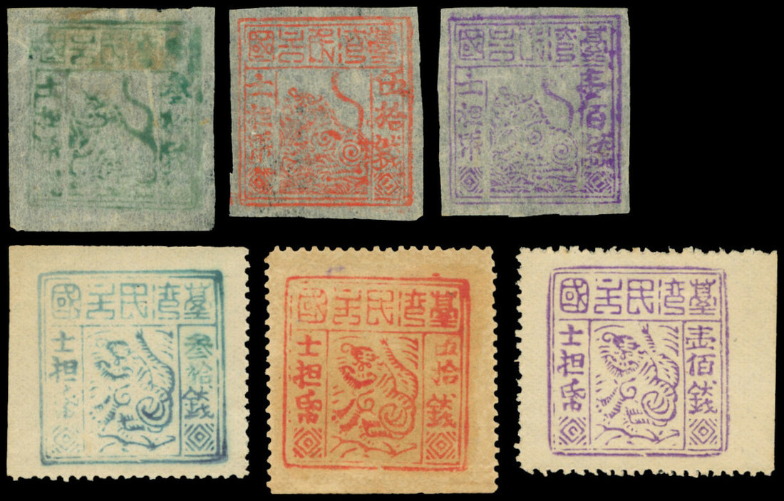 1895 small selection of The Black Flag Republic issue, including 5 sets mint, 2 set used and 2 blocks, different issues, very fine. Chan F38-F51.