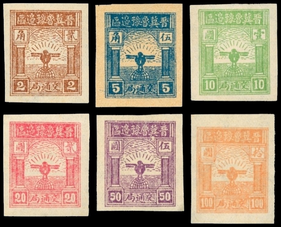 Bird on Globe, Ten Cents Unite in value, set of six, unused. NC 187-182