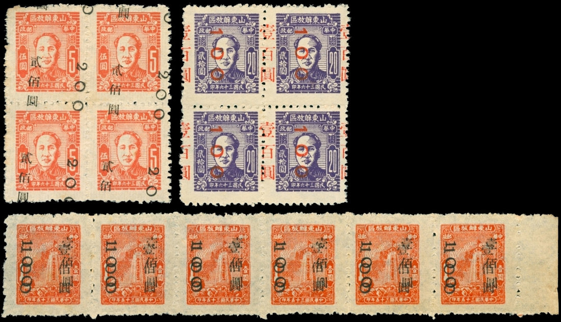 Shangtung machine surch EC 119f, Black double, EC122c, EC121 surch misplaced, unused, (14).