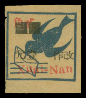 1943 Resurcharge on First Issue: Machine Resurcharge; $1 on 20c. in red on blue pigeon, unused; small to large margins, some creases and small thin at top. Yang EC220; S.G. EC185, £3700