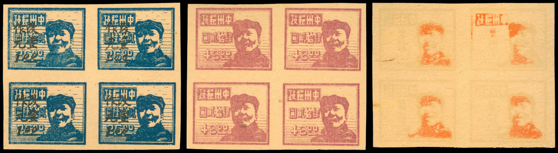 Kaifeng print Chairman Mao CC15-20 block of four, CC35-37 block of four, Chang-chow Currency CC41-46, unused, (43).