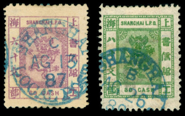1884-1889 small dragon issues, 8 stamps from various issues, all postally used with date cancelled.