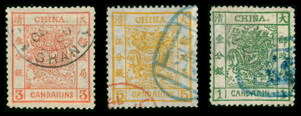 1878 1c. thin paper; 1882 3ca., 5ca. wide margin, repaired, used. Chan 1,5,6