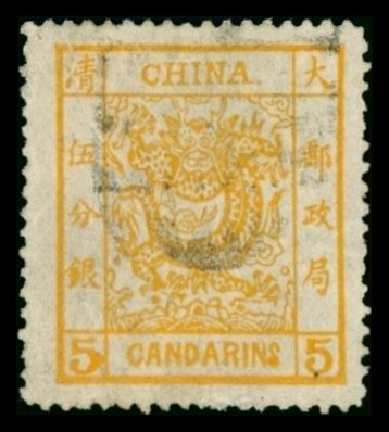 5ca. yellow ochre, bright colour, extra inked on "s" variety, used, very fine. Chan 6.