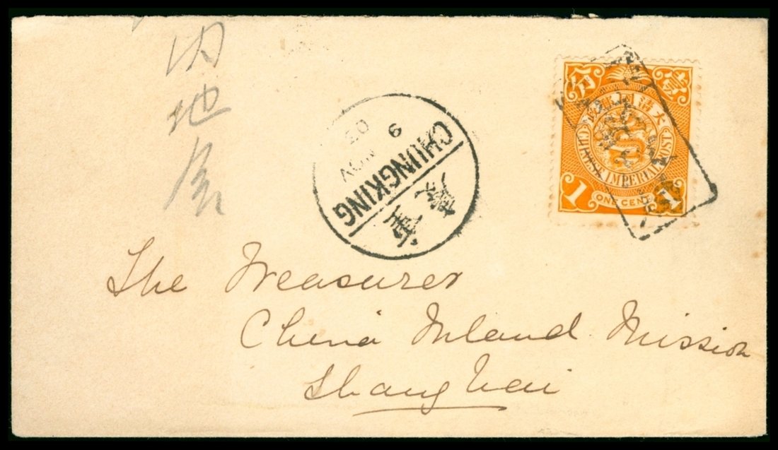 1903 (11/9) Szechwan cover to Shanghai, 1c. coiling dragon tied with Baoning tombstone cancellation, Chungking transit. Shanghai LPO c.d.s. (11/22)