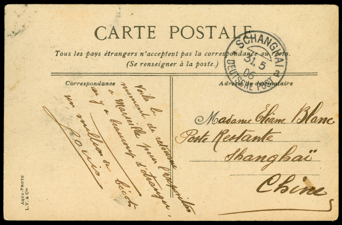1906 (26 April) two postcards from Italy to Shanghai through Germany post office in Shanghai (31 May), fine to good