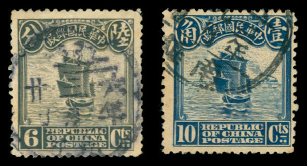 1913-19 Junk issue, London and 1st Peking Print ½c. to 10c. eleven stamps, used with Kiangsi small towns c.d.s..
