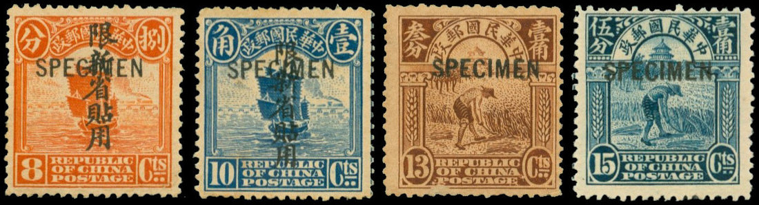 1923 Junk 2c. To 15c. 14 values overprinted "SPECIMEN". Good to fine.