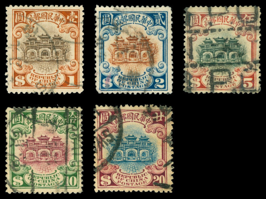 1923-33 2nd Peking Print Hall of Classics $1 to $20, used, very fine. Chan 268-272.