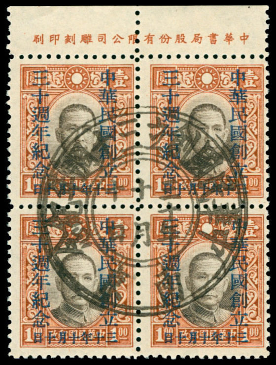 1941 30th Anniversary of the Republic of China, 1c. To $1 set of ten. All cancelled by first day commemorative cancellation, very fine. Chan 518-527