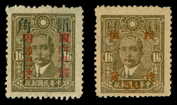 1942-43 Provincial Surcharges; a mint collection on stock pages with a good range of the different surcharge issues sorted by province, with a few D.P.P. for Kiangsi, East Szechwan and Yunnan, some better surcharge values including 50c. on 16c. with perf.10½ for Honan, Hunan, Kwangsi, Kwangtung (2), Kwangsi, East Szechwan and West Szechwan (2); 50c. on D.P.P. including West Szechwan surcharge inverted, Hupeh on East Szechwan and perf.10½ Honan and Kwangsi. A good lot. (95)