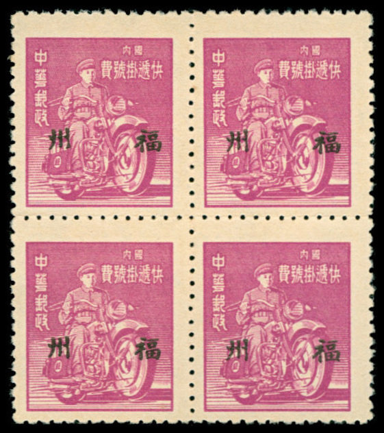 1949 Foochow machine overprint on Unit Stamps, block of four, 4 sets, unused, very fine. Chan S183-S186.