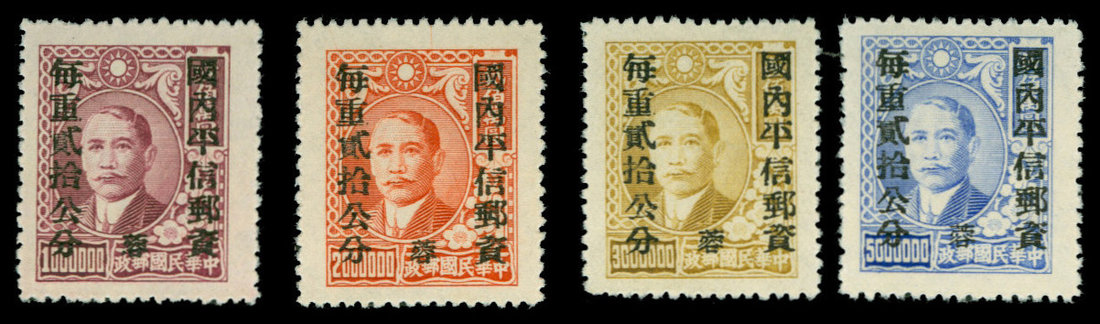 1949 West Szechwan, surcharge Domestic Ordinary Unit Stamps, set of twenty-six, unused, very fine. Chan S113-138.