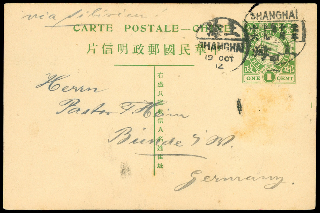 1912 (10,19) 1c Flag PSC to Germany, missing a stamp.55