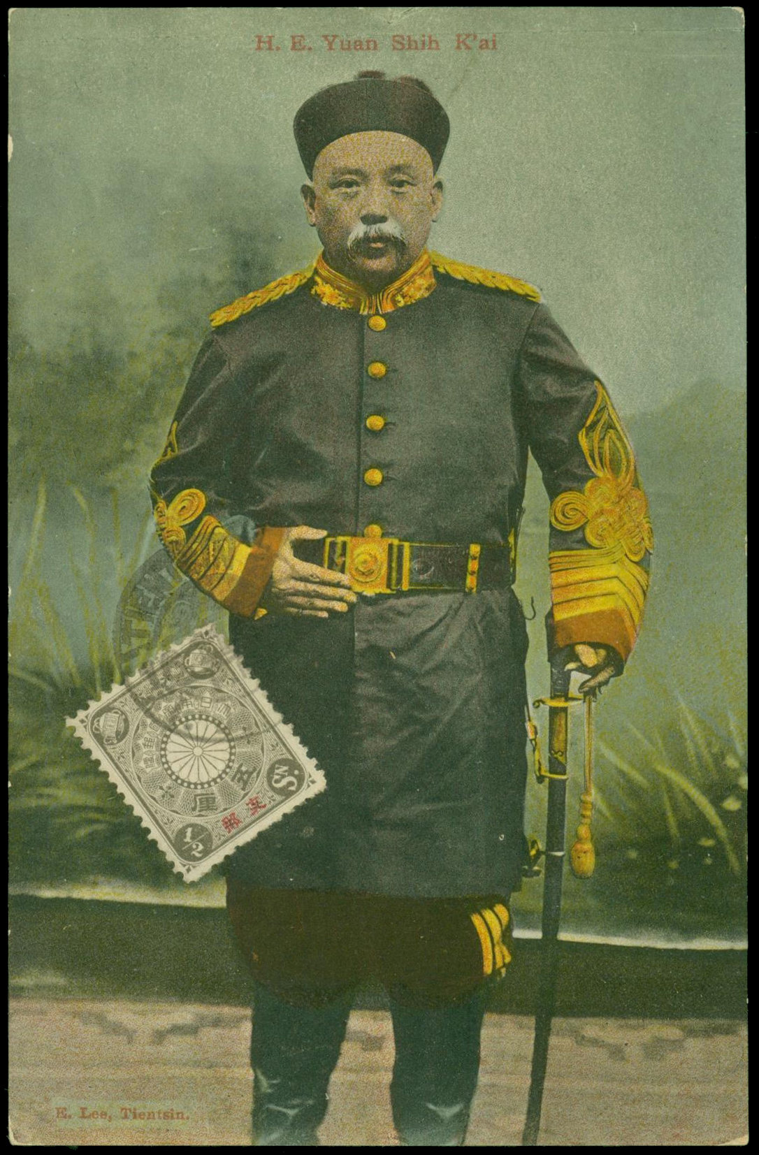 1912 Yuan Shih Kai picture postcard, bearing Japan Post Office in China ½s. Tied by 'Tientsin I.J.P.O.' c.d.s..