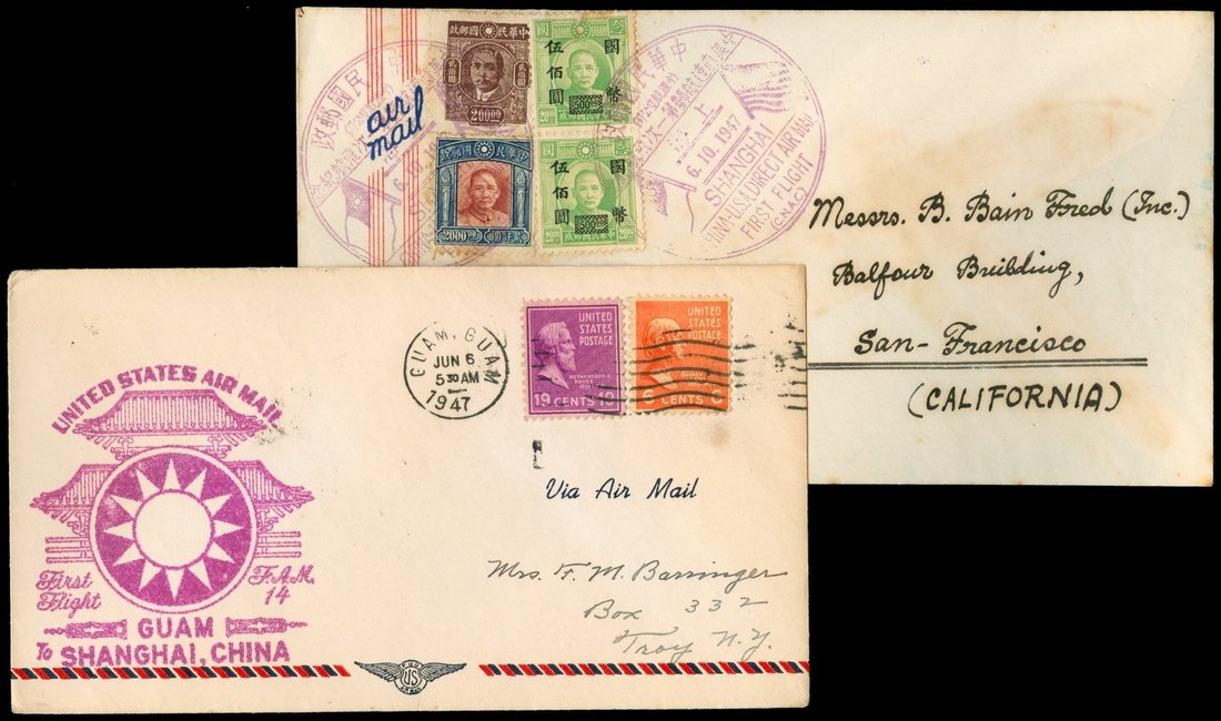 1947 Group of four First flight cover between Shanghai and U.S.A., plus one from French Tunisia.