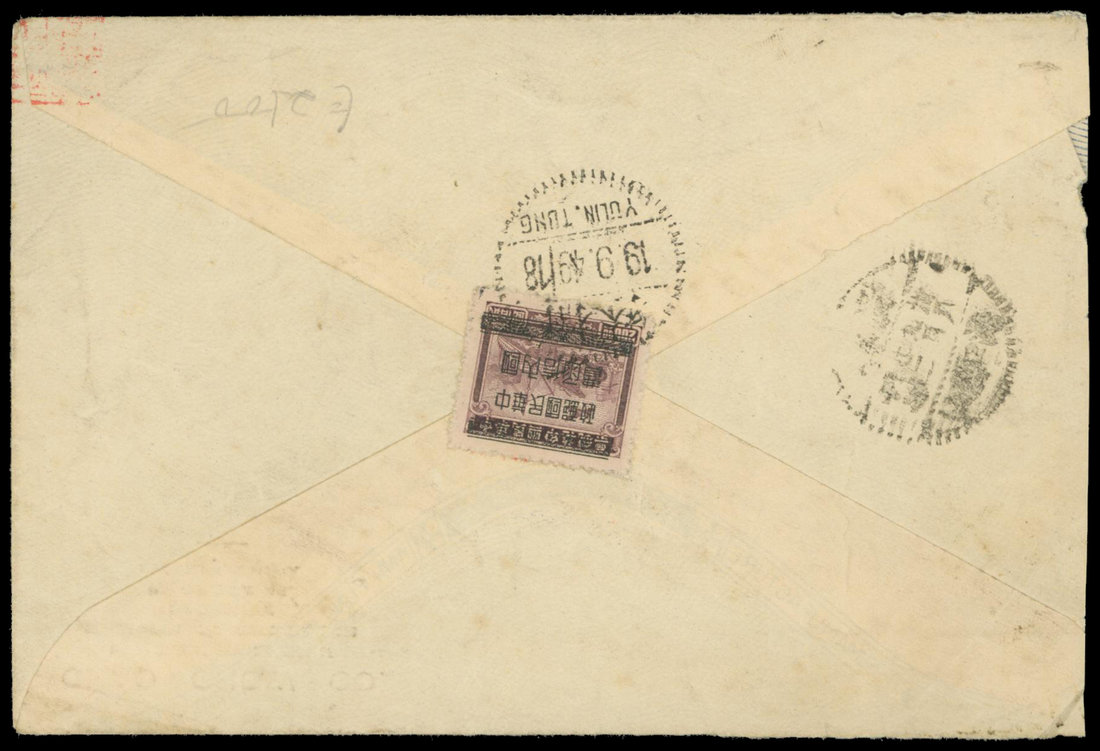 1949 (9/19) Solider Mail Silver Yuan airmail cover Yulin, Swatow to Haikou, Hainan (9/22). Single domestic unit stamp.