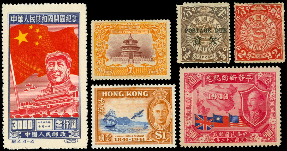 1898 - 1980 two stock cards including some coiling dragon, used and mint; Temple of Heaven, used and mint, few sets of Manchukuo and Hong Kong issues. Good to fine.