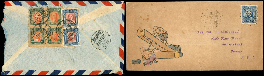 1926-1947 13 covers mostly sent to U.S.A. with different rates plus 1 incoming cover 1935 from Germany to Shanghai, good to fine.