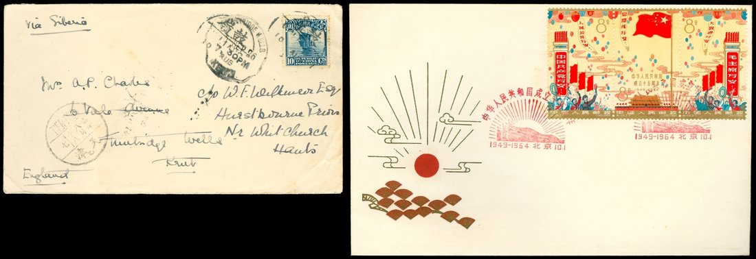 1926-1994 A group of covers, first day covers,includes 1926 Kuliang to Kent,England;1964 Anniversary of the People's Republic first day cover,1994 volunteer soldiers free postage with red trangle postmark,etc.