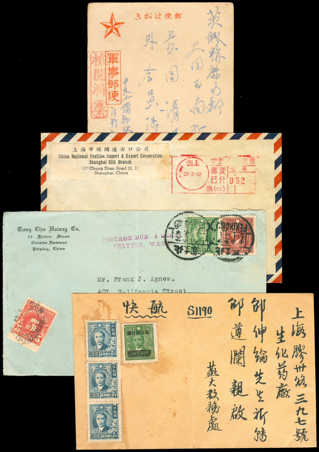 1939-1962 15 covers, aerogrammes, cover fronts, including Republic of China, Hong Kong, Japan. Mixed condition.