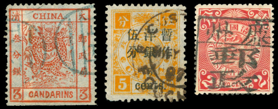 A small group of used stamps, including Large Dragon (4). All damaged plus few dowager.