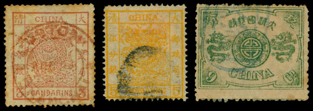 Small range of Imperial period including Large Dragon 5ca. thin paper, used; 3ca. wide margin 3ca. Used with red Customs Shanghai c.d.s. Set of small dragon, Dowager and Shanghai Local Post etc.