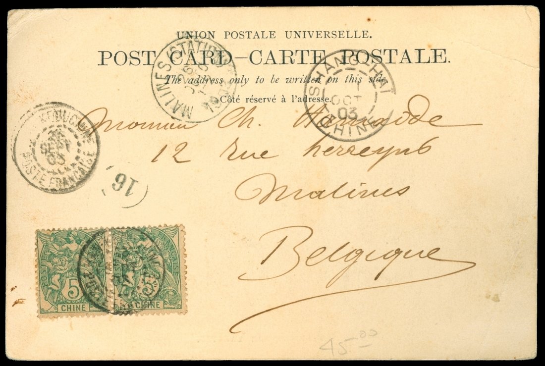 1903 (9/26) Picture Post Card French Office Hankow to Belgium, via Siberia route.