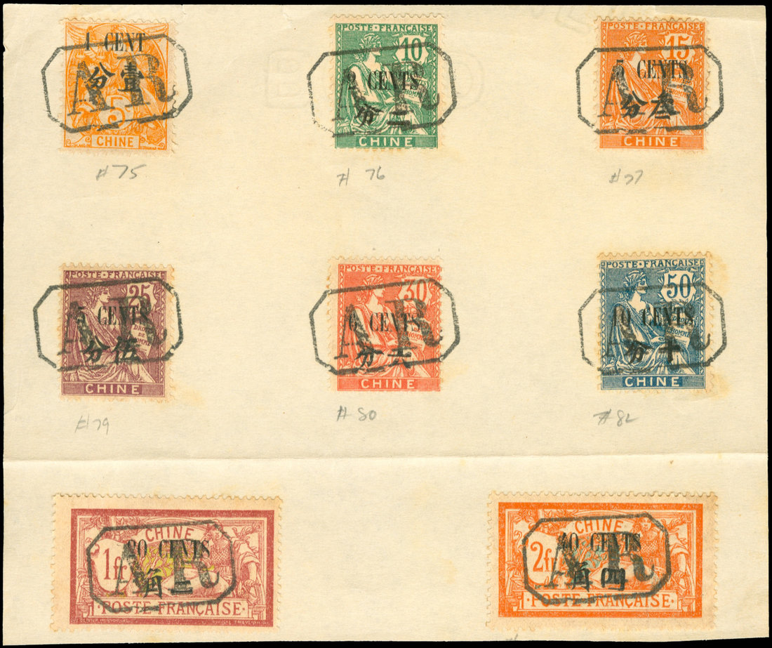 1922 Regular Issue, 2nd surcharge 1c. to 3c., 5c. to 40c., cancelled framed "A.R." on page. Fine. Chan FF90-92, 94-98