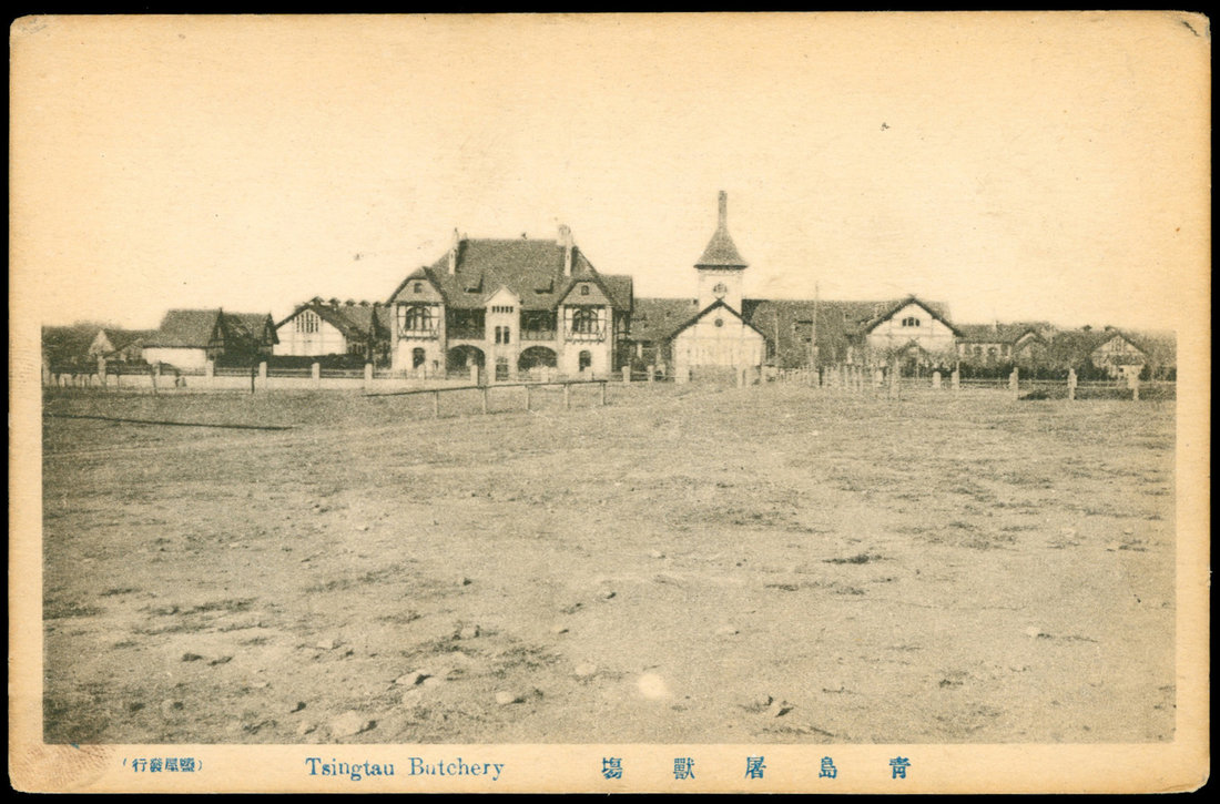 4 Tsingtau picture postcards, unused, including view of Tsingtau and Harbour, Butchery, etc.