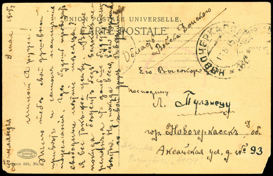 1915 Russia military Picture Post Card, Navy censor marking in Boli, Far East town.