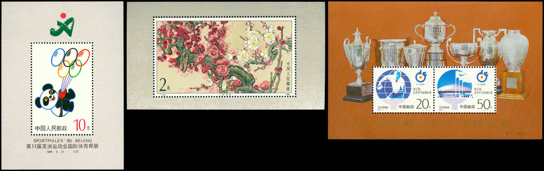 1985 T103M Plum Blossom miniature sheet (1); 1995-97 43rd World Table Tennis Championship miniature (7); 1990 Sport Philex' 1990 Beijing miniature (2)