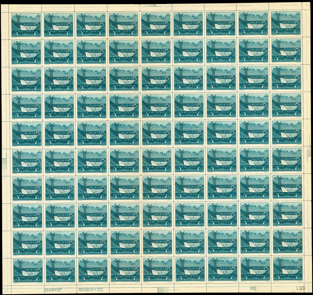 1958 S26, Ming Tombs Reservior, complete sheet of 90 with centre folded.