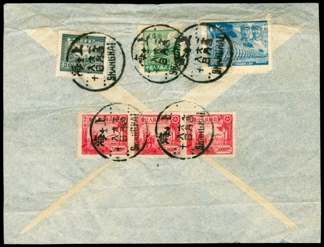 1950 (6/8) Shanghai airmail cover to Canada, good combination usage. Total $15800 rate.