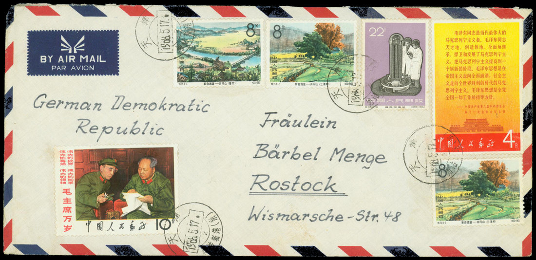 1968 (5/17) W2 Mao plus others airmail to East Germany.