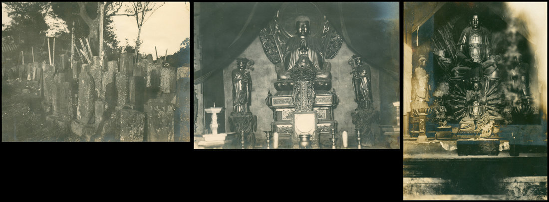 Original photos from Late Qing Dynasty, three photos showing Chinese temple.(about 15X11cm each)