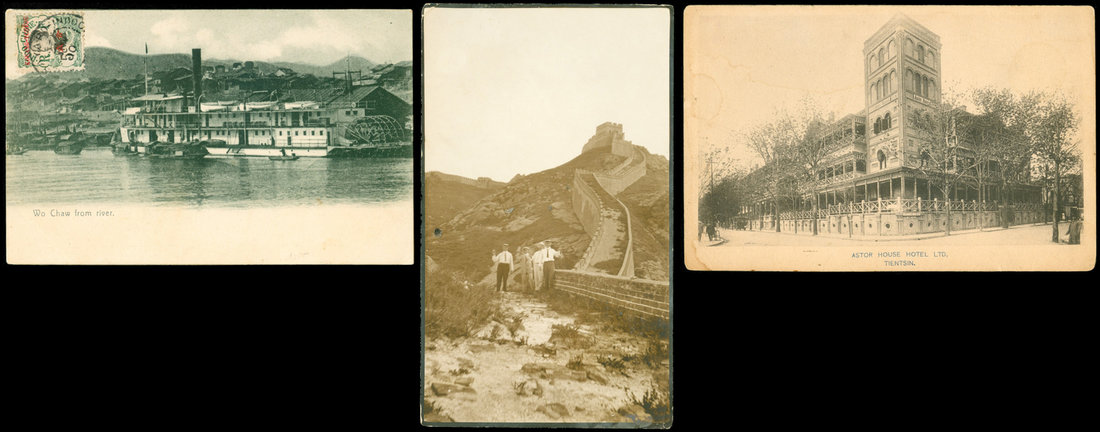 1906-1940's 24 postcards and photos showing different view of Chinese cities, includes Tientsin,Dairen,Chinkiang,Port Arthur, Wochow, Mukden, Peking ect., some cards are in colour.