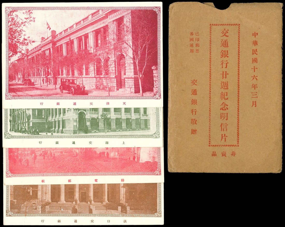 1927 Bank of Communications 20th Anniversary commemorate complete set of 4 with original cover, unused