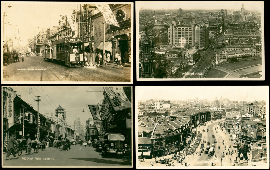 1930's A group real photo Shanghai postcards, includes Foochow Road,Bird's-eye of Nanking Road, Ave. Edward VII (now Yanan East Road), good to fine. (10)