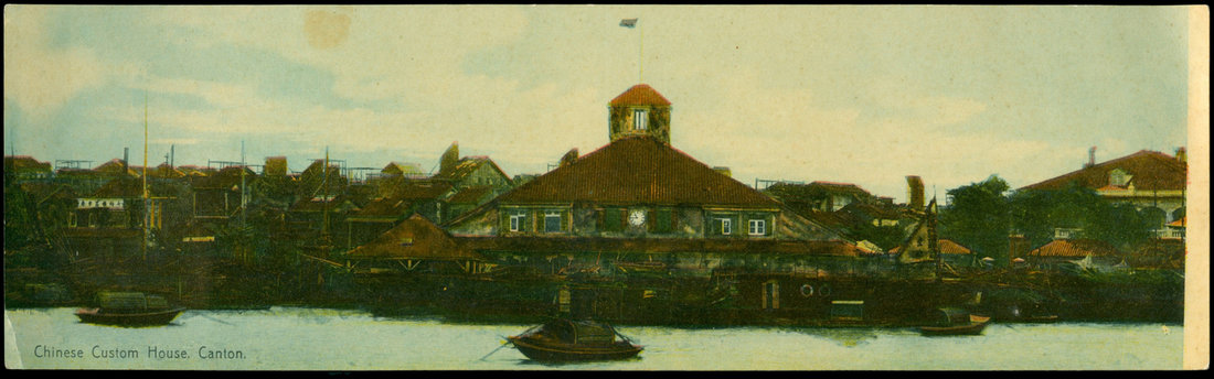 Early Canton view two-fold Picture Post Card, Custom House, unused.