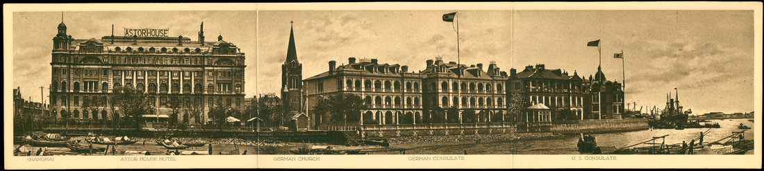 Early Shanghai Bond view Picture Post Card, three-fold card, unused.