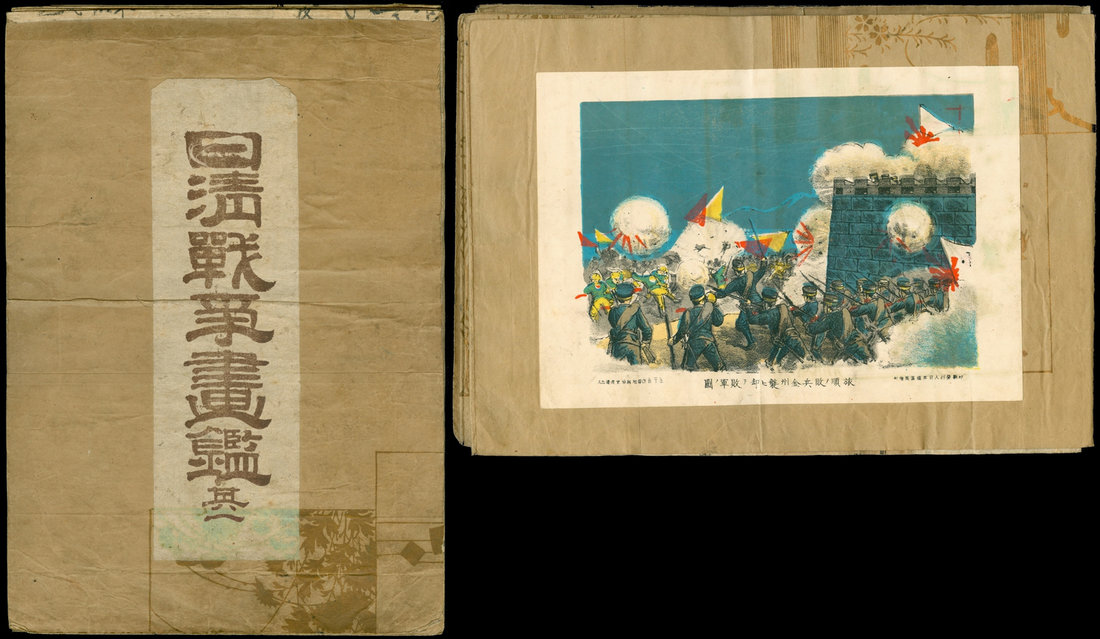 1894 Sino-Japanese war lithograph, total 22 pictures stick on two books,each picture size is 19X13cm, in very fne condition.