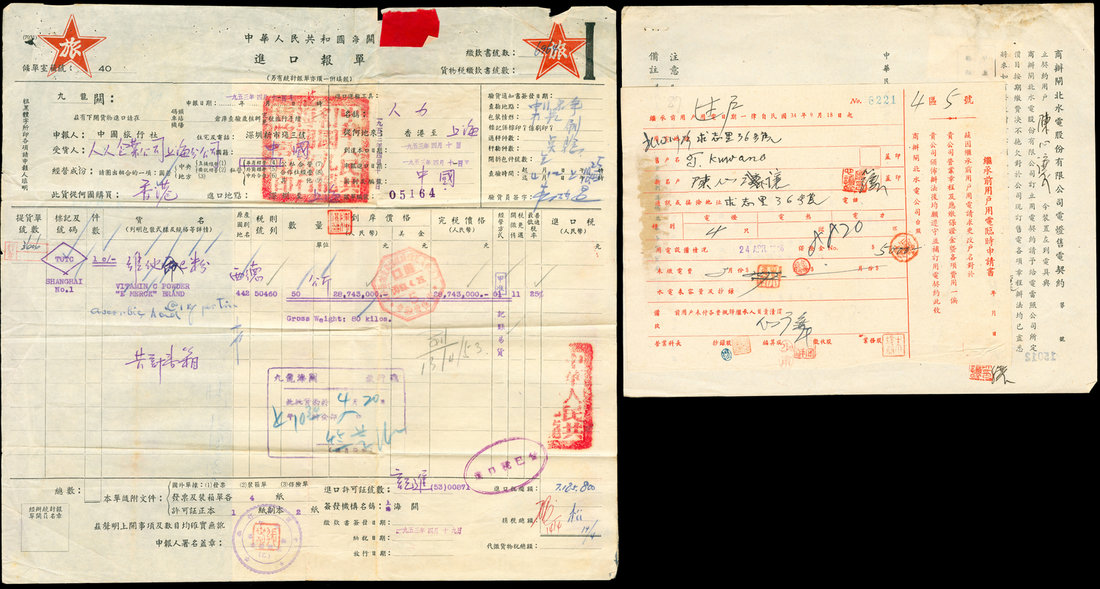 1940's A lot of contract and record file of Shanghai Electric Power Company,also a 1953 Import declaration document from Hong Kong to Snanghai.