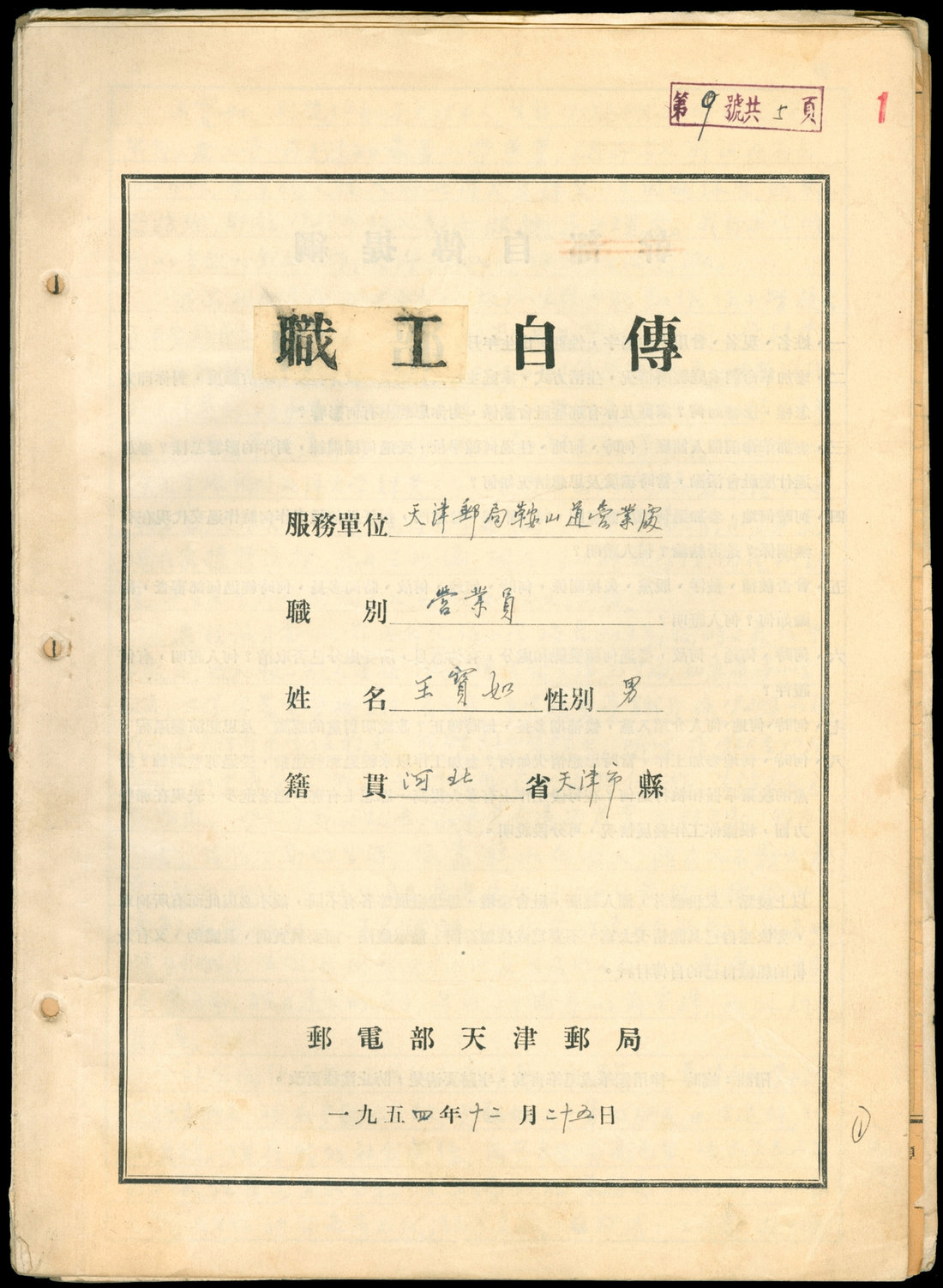1954 One set of Tianjin post office personal case